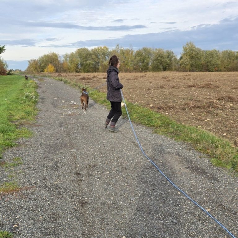 Marcher en longe, c’est écouter son chien. C’est lui permettre d’être acteur de sa promenade, d’exprimer ses besoins, sans contrainte inutile.
