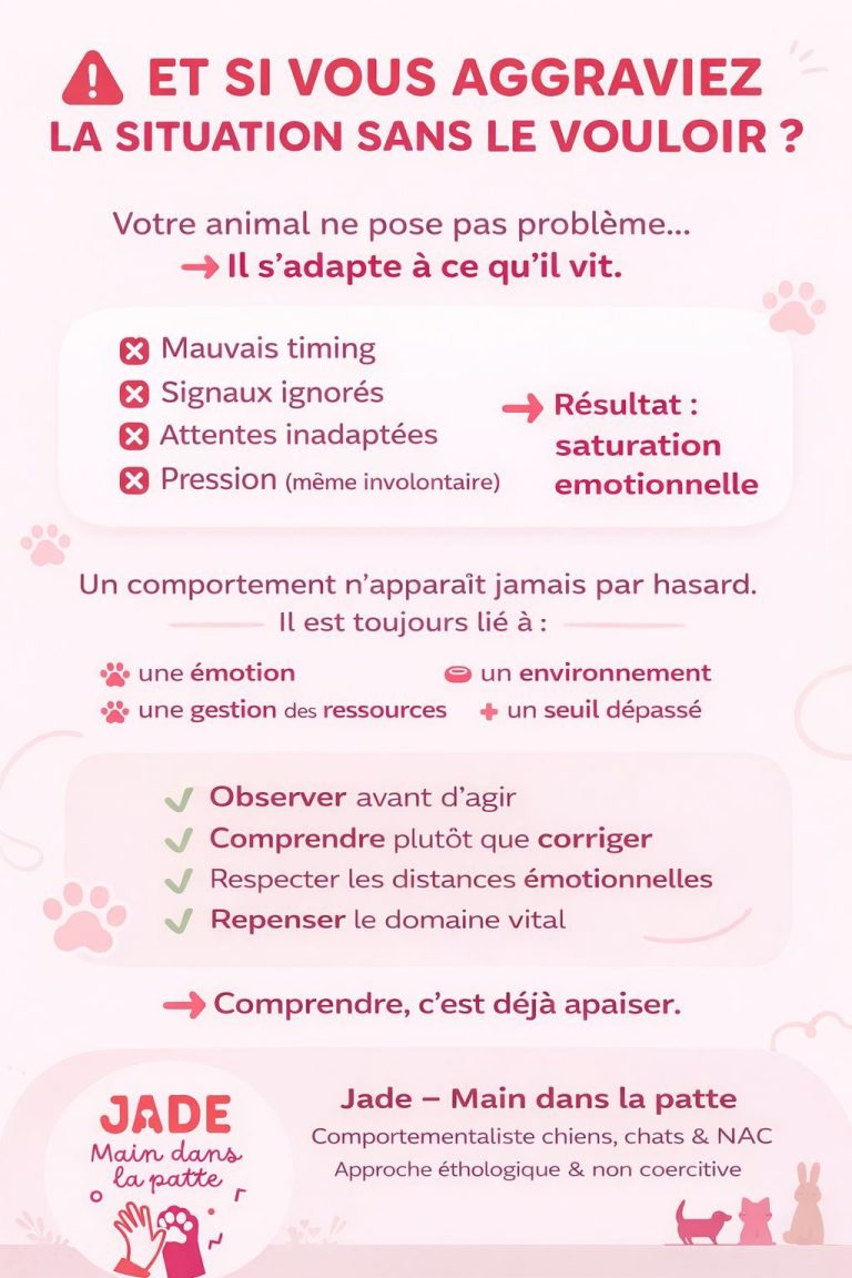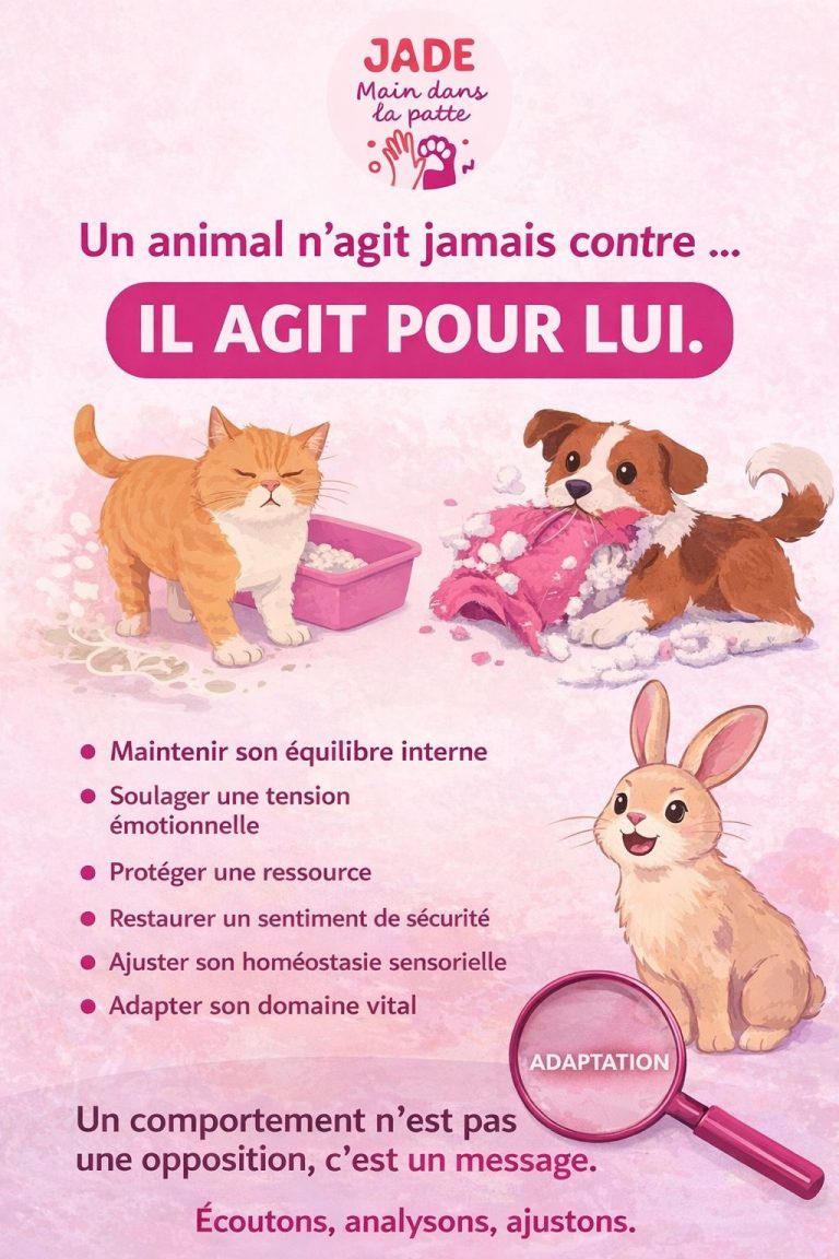 Nos animaux ne cherchent pas à nous défier : ils cherchent à comprendre, à s’adapter, à se rassurer, et à vivre dans un environnement cohérent.